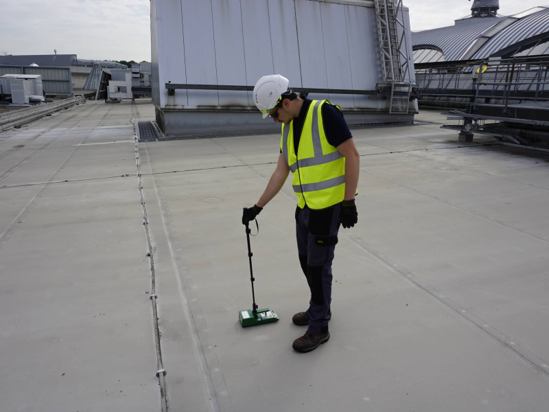 The process involves electronic leak detection of the waterproof covering and is typically undertaken by one of two methods, depending on the roof build-up and waterproofing to be tested. Both test methods rely on the electrically conductive properties of the substrate and insulating properties of the waterproofing for accurate detection of breaches and is suitable for most types of membranes. The test can be undertaken to both horizontal and vertical waterproofing, ensuring the entire roof is tested.