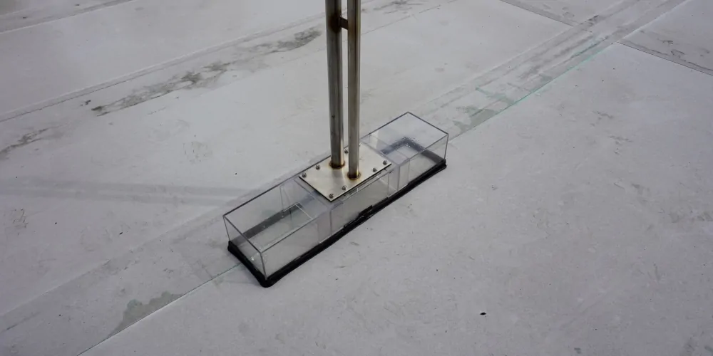 This test can also be used for warm roof constructions where the insulation is non-conductive or does not have a conductive surface. In such situations, if there is not a conductive path between the surface of the membrane and the deck, electronic leak detection methods may not be suitable. Again, differential pressure testing can be used to establish integrity of laps and is particularly useful on single ply membranes, such as pvc and tpo and felt systems.